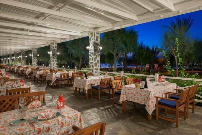 A la carte restoran (Akdeniz mutfağı) bir gün öncesinden rezervasyonlu olarak ücretli hizmet veriyor.