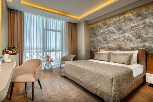 Konforlu bir konaklama deneyimi sunan tesisin 162 odası bulunuyor. Özenle hazırlanmış odalarda misafirlerin ihtiyaçlarına yönelik imkanlar bulunuyor. Tesiste konaklayan misafirler, açık ve kapalı havuzlarda keyifle zaman geçirebilir. Dileyenler SPA alanında sunulan hizmetlerden faydalanabilir. Ayrıca tesiste balayı misafirlerine özel olanaklar da sunuluyor.