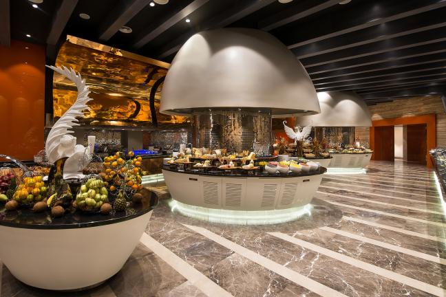 Tesiste zengin açık büfe yemeklerin yanı sıra ana restoran içerisinde şov muftakları, dünya mutfağı günleri, sağlıklı yaşam büfeleri ile birbirinden lezzetli beş çayı ikramları bulunuyor. Barlar, snack restoranlar, Pay TV, nargile cafe ve pastane ücretli hizmet veriyor.